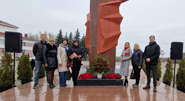 Делегация трудового коллектива ОАО "Мозырский домостроительный комбинат" приняла участие в Митинге и возложении цветов к памятнику В.И.Ленину. А затем участники посетили праздничное торжественное собрание в Городском дворце культуры.